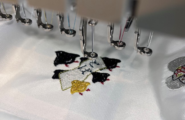 無駄を出さない和裁と効率の良い洋裁の技術を取り入れた小ロット生産体制に取り組むほか、刺繍ミシンなどの二次加工設備を備え、よりオリジナル性の高い製品作りに対応しています。