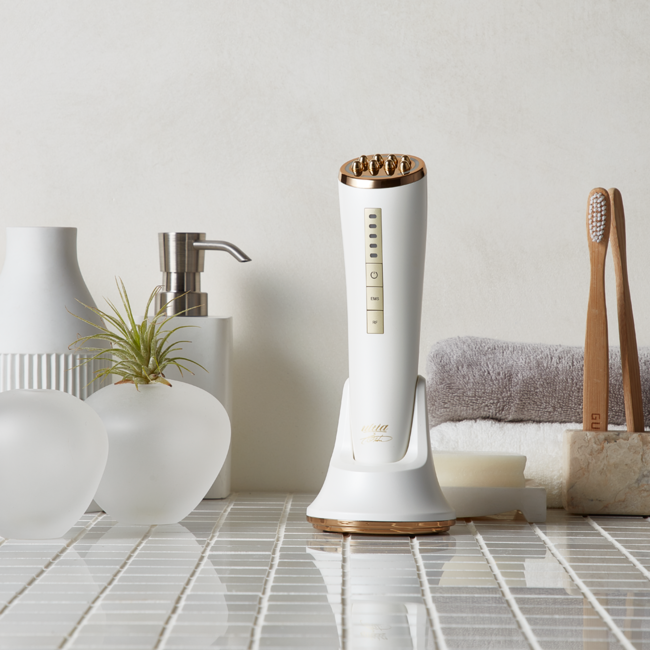充電スタンドから外しコードレスで使用可能かつ130gと野球ボール程度の軽さで小型な仕様のため、手軽に日常のケアに取り入れることが可能な機器となります。