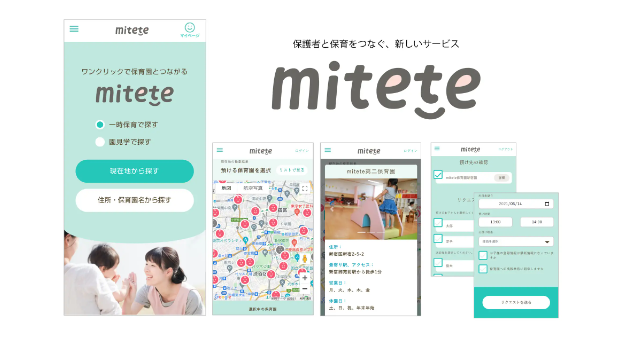 miteteは、ワンクリックで保育園と保護者がつながる、新しいサービスです。保育園の検索や情報閲覧だけではなく、気になる保育園にそのまま園見学や一時保育の申込みができます!