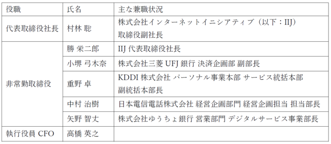 同年4月1日に開催する取締役会を経て、新役員体制は以下となる予定です。