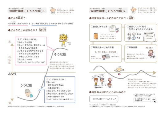 14種類の精神疾患などを取り上げ、子どもたちが身近な環境で学ぶことができる情報を提供しています。