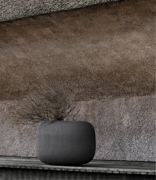DOMANIでは新作コレクションを発表する際、コンセプトに合致する空間でプレゼンテーションを行います。「MELIDES」の舞台となったのは、デンマーク南部の北海沿いに位置する「Wadden Sea Centre(ワッデン・シー・センター)」。氷河期に形成された全長約500kmに及ぶ世界最大の干潟、ワッデン海国立公園の玄関口となり、ワッデン海の自然と歴史を伝える建物です。設計はデンマークの建築家、Dorte Mandrup(ドルテ・マンドラップ)が手掛けたもので、地元の伝統的な農家の建築様式と配置を参考とし、地元で調達した素材を採用。外壁から屋根まですべてをワラ葺きで仕上げて環境になじませながらも、コンテンポラリーな佇まいをかなえています。メランコリックな湿地帯と波打つ砂丘から上昇するように見えるこの建物は、ワッデン海の風景と見事に調和。素材やかたちによって人の心に訴え、物語を語るDorteの手法は、DOMANIが核心として取り入れ続けてきたものと共通し、「MELIDES」でもその真髄が感じられることでしょう。