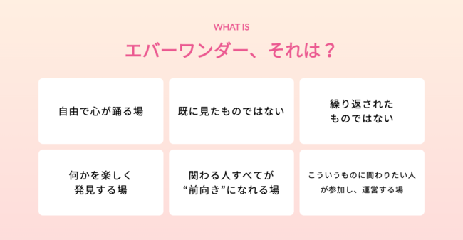 エンターテインメントは多くの人の心を動かし明日への活力を与えます。エンターテインメ ントの力によりこのような状況を打開し、自分らしく生きていく人を増やすことを願っています。これがプロジェクト「EverWonder」を立ち上げた背景です。