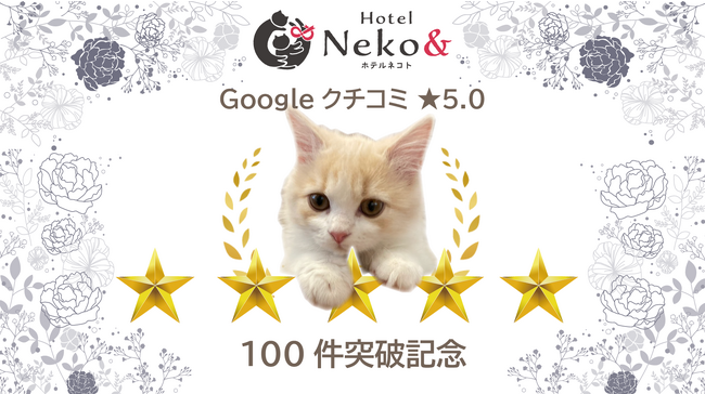 猫専門ペットホテルであるHotel Neko&(ネコト)は、2020年の開業以来、皆様に愛されてご利用者様からのクチコミ評価☆5.0を維持し続けております。この度、皆様からのクチコミ数が100件を超えたことに感謝の気持ちを込めて、無料宿泊クーポンや人気キャットグッズのプレゼント企画をInstagramにて実施しております。これからもすべての猫ちゃんと猫飼いさまの幸せに貢献できるように精進し、当ホテルに関わっていただく全ての皆さまと共にこの先も歩んでいきたいと考えております。