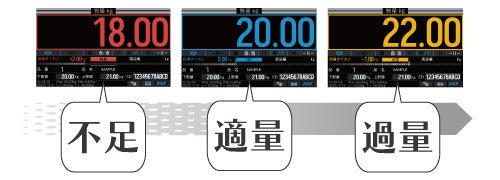 カラー液晶表示により、一目で「不足」「適量」「過量」がわかります。