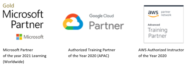 上記のような成果があり、昨年、ベンダー認定トレーニングパートナーとして 「Microsoft Partner of the year 2021 Learning (Worldwide)」で世界一、Google Cloudより「Authorized Training Partner of the Year 2020 (APAC)」でアジア一、認定インストラクターとして所属講師が「2020年 日本AWS認定インストラクターアワード」で日本一を獲得し、日本一の三冠達成、世界で最も優れたIT研修企業20社に贈られる「TOP IT Training Companies」に2年連続選出されるなど、世界のIT人材育成に貢献しています。
