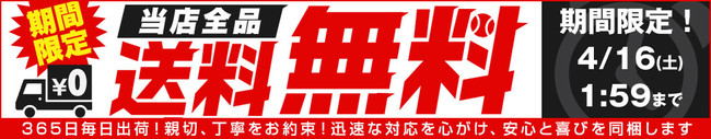 グローブ・バット、ユニフォームにスパイクなど約7,000商品が全て期間中送料無料!