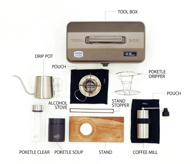 「いつでもどこでも本格的なコーヒーを飲みたい」という気持ちとPOKETLE(R)のコンセプトである「必要な分だけを持ち歩く」という考えから生まれたコーヒースターターキット「POKETLE COFFEE KIT」のバージョンアップ商品として開発。