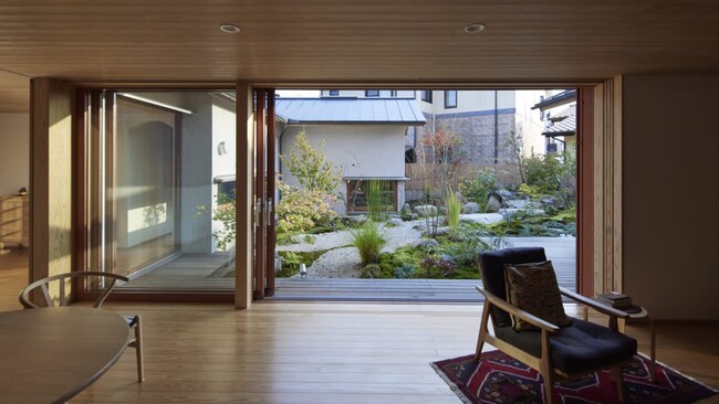大きな木の窓を全開にすることで、風が通り、開放的な空間を感じられます。