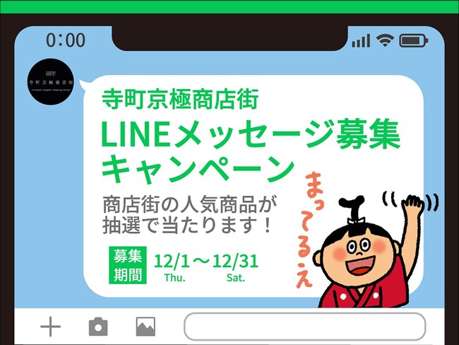 「寺町京極|商店街美術館」と連動した「LINEメッセージ募集キャンペーン」も同時開催中です。LINEで「寺町京極|商店街美術館」展示作品の感想やメッセージをお寄せいただいた方を対象に、抽選で商店街の人気商品をプレゼントいたします。