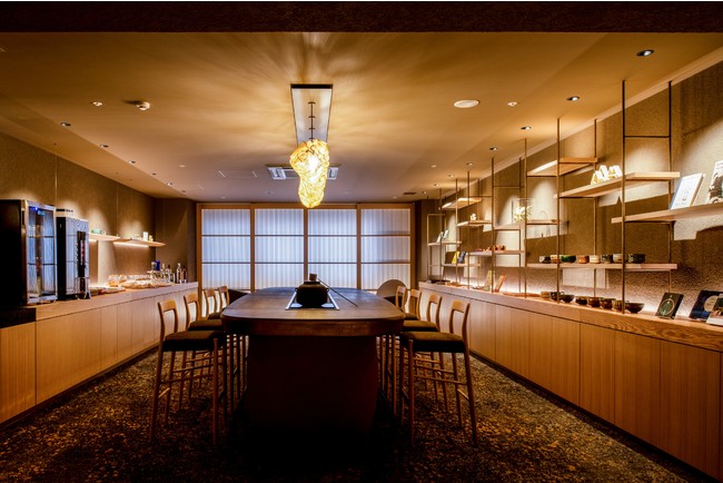 さらに、urara宿泊者専用ラウンジを完備。時間や季節によって変化するオリジナルの軽食やドリンク。こだわりのアルコールも全て無料でご用意。ラウンジ中央にある漆のテーブルでは抹茶体験も楽しむことが出来る。