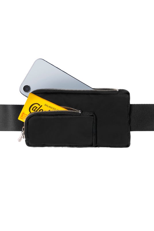 モバイルと宇宙食だけを持って旅行に行くというコンセプトのミニマルなウエストバッグ。斜めがけにもできる2way仕様。