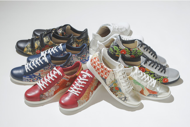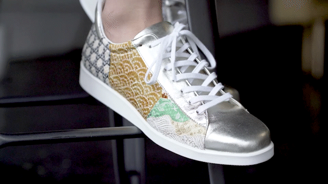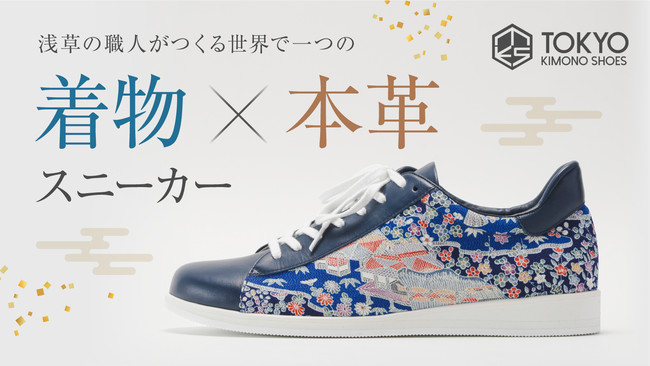 浅草の靴職人の技で、美しい着物と本革スニーカーを融合させたユニセックスの「着物×本革スニーカー」(着物スニーカー)です。
