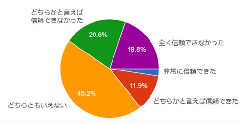 仲介業者が案件遂行を行うにあたり信頼できたか、という問いに対しては、「全く信頼できなかった」「信頼できなかった」の合計が40%に達し、「非常に信頼できた」「どちらかといえば信頼できた」の合計の15%を大きく上回る結果となった。