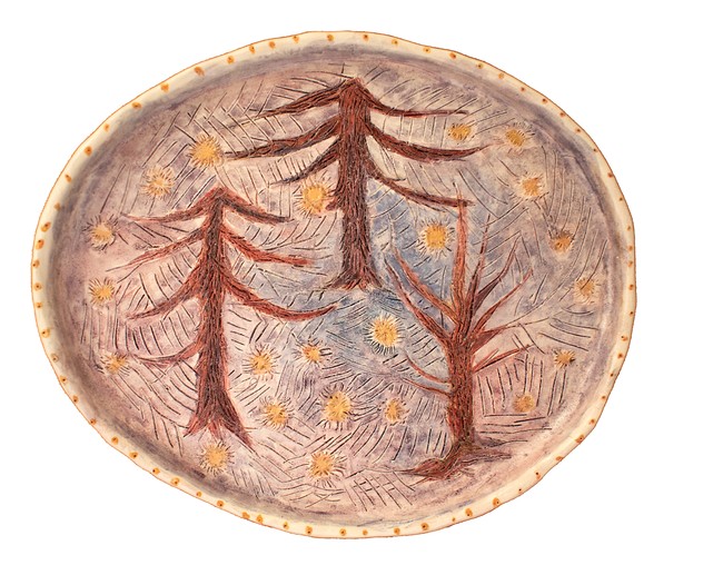 久保晶《枯れ木と星》、2022年、オーブン陶土にアクリル絵具、16x20cm