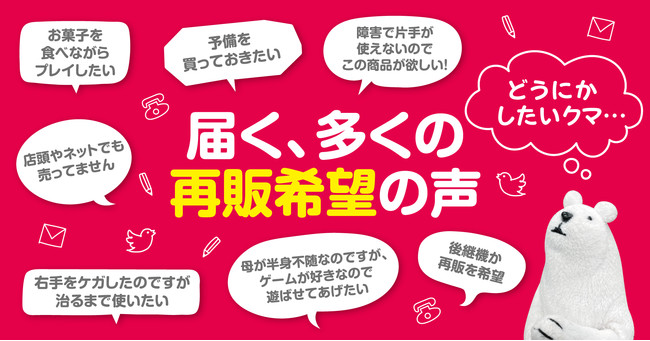 『片手グリップSW』は2018年に発売された製品ですが、販売終了後に根強いファンや片手が不自由でお困りのゲーム愛好者の方々から再販希望の声が多く集まるようになったため、再販クラウドファンディングを企画しました。