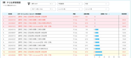 スタディログダッシュボードは複数のデジタルドリルと連携しており、デジタルドリルを使った学習の記録を整理して表示します。対応しているデジタルドリルであれば、利用するドリルが変わっても同様の画面で学習データの閲覧が可能で、学習や指導の方法を習得し直す手間がかかりません。