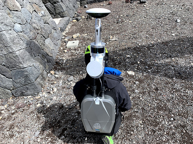 日本DMCは、可搬ライダー計測機器を活用した森林調査法の研究や、G空間情報センターでダウンロードできる富士山登山道の静岡県側の約21kmを計測した実績があり、SLAM技術を活かした非GPS環境の計測、精度向上に向けた技術開発を行っています。適切な利用ができるよう、GreenValley International社のLiBackpack DGC50の計測方法やSLAM後処理ソフトウェアの利用方法(パラメータ調整等)を整備し、国内の測量業に利用できる方法を模索してきました。