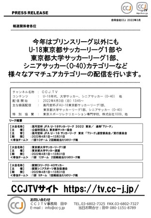 高円宮杯JFAU-18サッカープリンスリーグ2022関東(1部、2部)全試合のライブ配信及び録画配信を行います。今年はプリンスリーグ以外にもU-18東京都サッカーリーグ1部や東京都大学サッカーリーグ1部、シニアサッカー(O-40)など様々なカテゴリーの配信を行います。