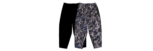 総柄を作るために、前面に大きく柄を描き下ろしたのが特徴のパンツです。