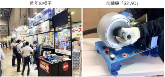 主力商品である油圧ホース加締機「S2-AC」の実演・紹介を行います。