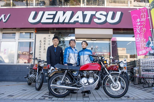 その中で、マフラーの販売パートナーとしてSANKEI側からアプローチしたのが旧車・絶版バイクの専門ディーラー「ウエマツ」でした。