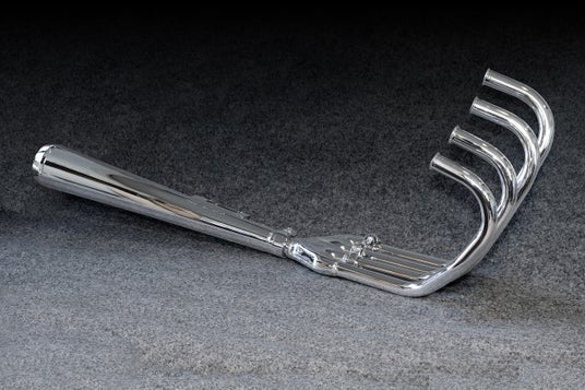 CB400FOURのマフラーは、国産車として初採用となったテーパーの筒型サイレンサーや、4in1集合スタイルを採用していました。ホンダのデザイナーが思い描いたマフラーを製品化するため、幾多の苦労があったと言います。