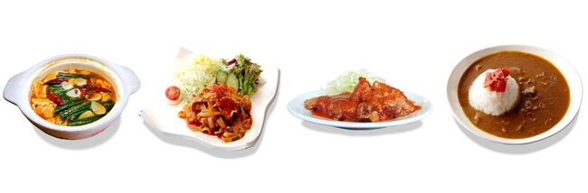 4つの施設で販売する新メニューでは、オアシス御殿場より人気の辛もつ鍋をさらにパワーアップした「博多激辛もつ鍋」、レンブラントスタイル御殿場駒門より料理長特製のピリ辛旨辛「豚キムチ定食」、御胎内温泉健康センターより旨辛でも激辛でも味わえる「とりチリ定食」、富士八景の湯より、スパイスを入れて激辛に仕上げた「汗だくふじさまカレー」が登場します。
