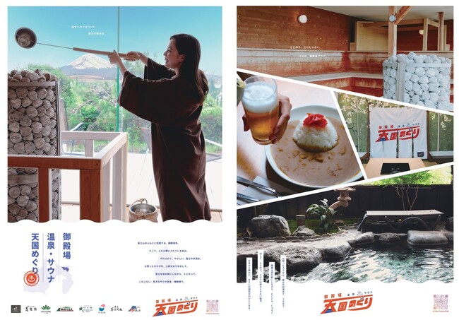 本CP終了後も、「天国めぐり」を一過性のキャンペーンではなく、御殿場の魅力の1つとして認識されるようにブランド化することが必要であると考えております。そのため、浸透してきた「天国めぐり」のさらなる認知拡大を図るため、御殿場の温泉・サウナのブランディングを意識したビジュアルによるポスターを制作しました。制作した広告物については、御殿場市内の温泉・温浴施設や富士山御殿場・はこね観光案内所、ごてんば観光案内所(御殿場プレミアム・アウトレット内)等の市内各所や首都圏の主要ターミナル駅のサイネージ等に掲出する予定です。