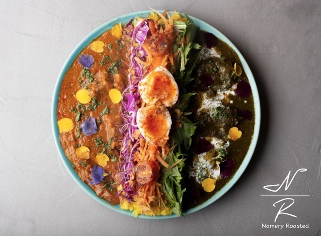 2種類のルーを「あいがけ」で選べるNamery Roasted日比谷店で大人気の「映える」カレーはこちらの原宿店でもご提供。オリジナルでスパイスを配合した様々な香りを楽しめるスパイスカレーや、厳選した松阪牛の濃厚な旨味/甘みとスパイスの辛さが絶妙なバランスのカレーを「混ぜ合わせて」食べて頂くのがオススメ。