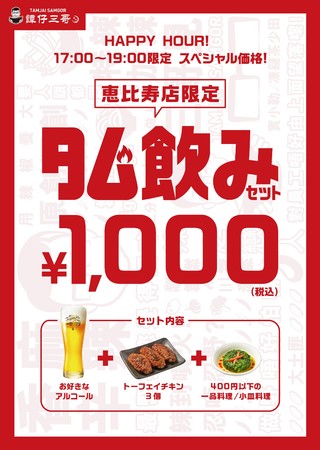 恵比寿店ではお仕事帰りの皆様にお楽しみいただきたいという想いから、ハッピーアワー「タム飲み」キャンペーンを開始いたします。