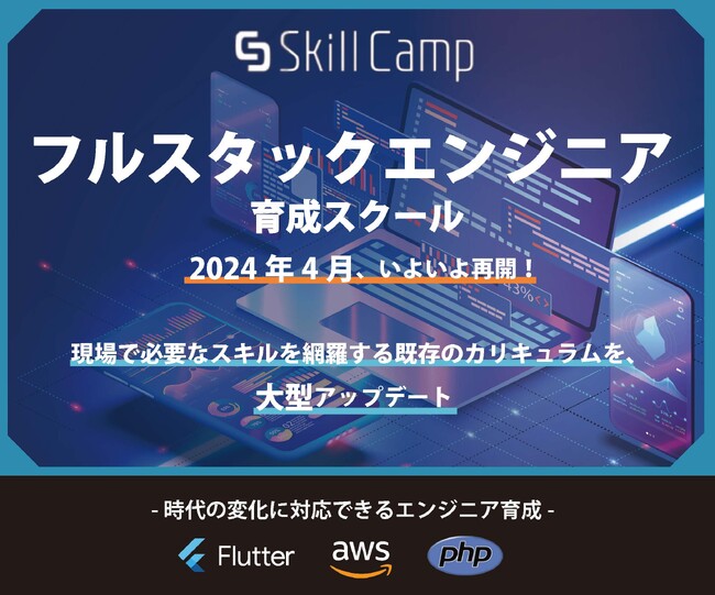 スキルエンジン株式会社(所在地:東京都中央区銀座、代表取締役社長:前田 直哉)の運営するエンジニア育成スクール(SkillCamp)は、2024年4月にスクールの運営再開にあたり、コースや教材のアップデートを行います。時代の変化に対応できるエンジニアを輩出するため「基礎」と「発展」の2つのコースを用意。既存のPHPの教材の改訂や、FlutterとAWS教材も追加いたします。