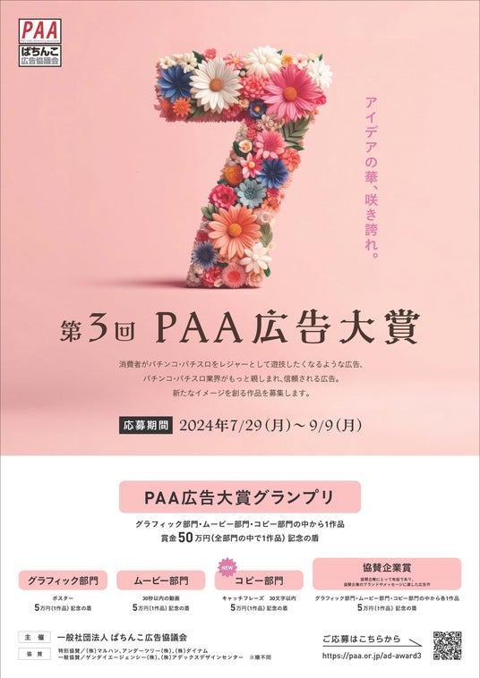 ぱちんこ業界の広告宣伝に関わる事業者で構成される一般社団法人 ぱちんこ広告協議会(事務局/東京都千代田区、嶋田崇)理事長。以下PAAと略)は、「第3回PAA広告大賞」の公募を、2024年7月29日から開始しました。