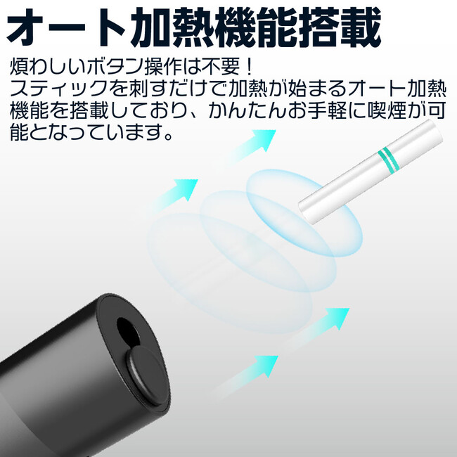 最大30本連続使用可能でオート加熱機能も搭載。丸一日持ち歩いても充電切れの心配はありません。