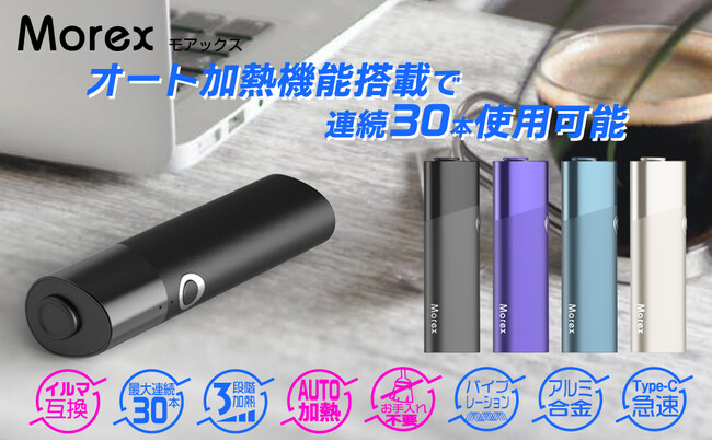 楽天市場、Yahoo!ショッピング等の大手ECモールで電子たばこ、加熱式たばこ関連商品を販売する店舗「デジモク」を展開する株式会社シェード(本社:東京都品川区、代表取締役社長:大野達朗)は「IQOS ILUMA」用タバコスティック「TEREA」にも対応した加熱式タバコデバイス「Morex」の販売を9月9日から開始いたします。