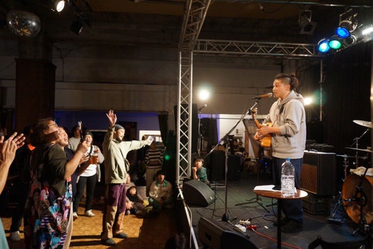 会場にはミュージックビデオに出演した島民を含む180人が訪れ、大いに賑わいました。今回のイベントは八丈島にある唯一のライブハウス「POT HALL」で行われ、会場内に設置された5枚の大型モニターで「八丈島DUB」のミュージックビデオが流れた際には、多くの人から手拍子や拍手が沸き起こりました。