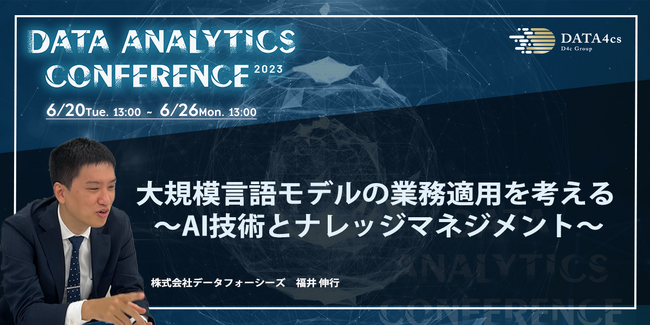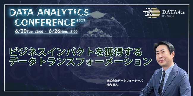 株式会社データフォーシーズ(本社:東京都港区南麻布、代表取締役社長:古本 孝、以下 D4c)は、【データ解析で世の中を変える】をテーマにしたオンラインカンファレンス「Data Analytics Conference」を開催いたします。