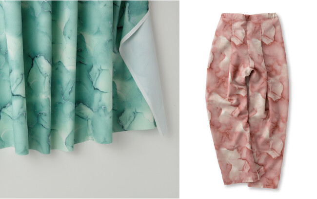 とろみのあるポリエステルの生地だからカーテン、クッションなどのインテリアグッズからバッグ、ウエアなどのファッショングッズまで、ドレープやキャザーを活かした作品がおすすめです。