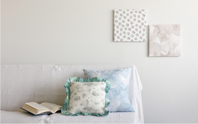 クッションカバーやファブリックパネルに仕立ててインテリアグッズに。ファブリックパネルは縫わずに工作感覚で作れて簡単です。