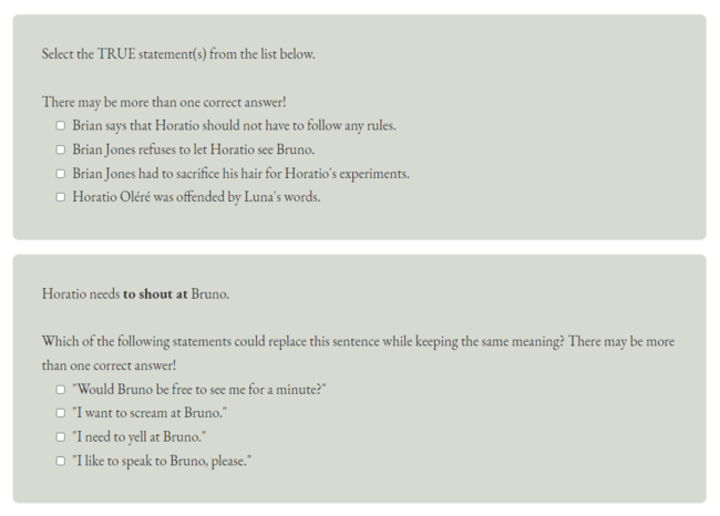 続いて、レッスンの内容理解や、文法、語彙、フレーズに関する設問に回答いただきます。