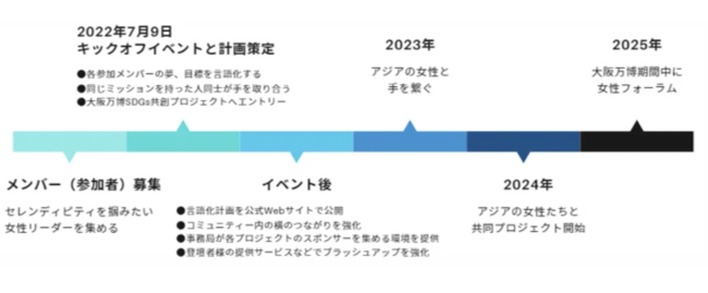また、2025年の大阪万博に向けて今後もコミュニティ内の横の繋がりを強化し、多角的な活動により日本の女性たちの活躍を推進していくだけでなく、アジアの女性たちとも手を繋ぎ、世界レベルでビジネスを通じて共に社会課題を解決していくための取り組みをおこなっていきます。