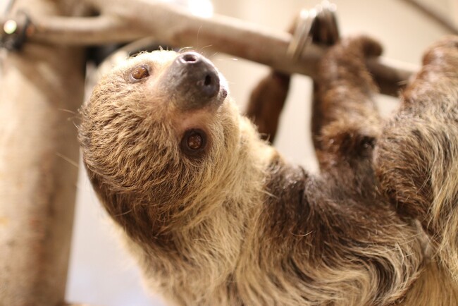 1日の大半を木の上で寝て過ごすナマケモノ。タイミングが良ければ貴重な動く姿を見られるかも!?イベントの時間にはナマケモノにおやつをあげることもできます。