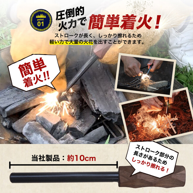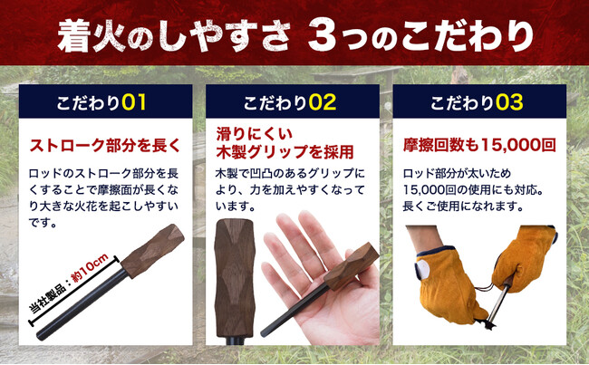 《「極太ファイヤースターター」の着火のしやすさ 3つのこだわり》
