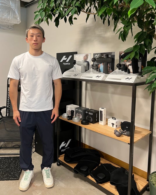 写真はFNCTUARYで取り扱いブランドの一つ『Hyperice』の展示会に参加する、K-1ファイターでありKrushスーパー・ウェルター級現チャンピオンの小田尋久選手
