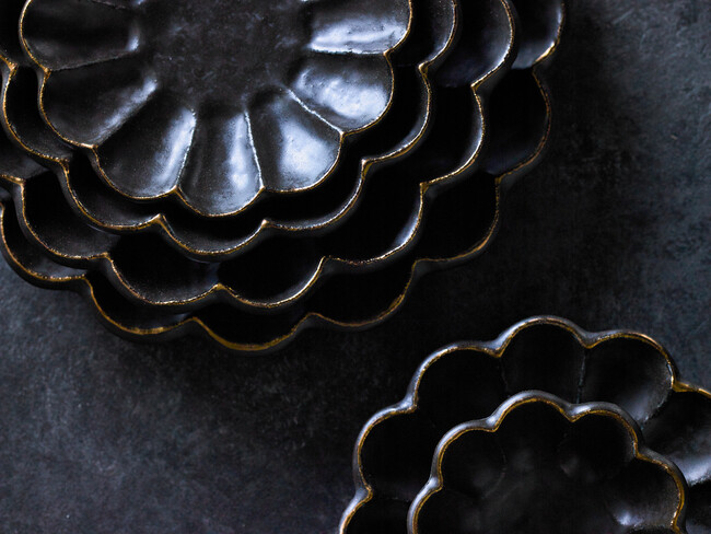 リンカ金環黒練の最大の特徴は、レンジが使える金装飾が施されていることです。高級感を感じさせる金の装飾は、レンジが使えなくなるという大きな欠点がありました。今回のリンカ金環黒練にはレンジに対応した金を施すことで、容器に移し替える手間が減り、調理の幅を増やしながらも、贅沢な雰囲気を醸し出すうつわとなりました。
