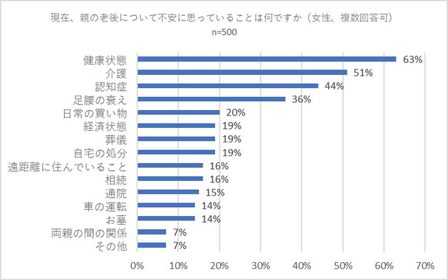 2.女性が「介護」など親の健康面により不安を感じている傾向