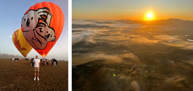 アサートン高原での熱気球体験は外せません。朝霧のじゅうたんの上をのんびりと飛行します。特に上昇するときに霧の境目を抜ける時は本当に幻想的。下を見ると時々動物が見えることも。航空機と同じ安全基準で管理されており、その点も安心。早朝しか行えないアクティビティなので早起きは必須です。(公式観光大使 ”リーマントラベラー” 東松寛文)