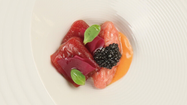 やま幸鮪のカルネクルーダ キャビア添え 酢橘の香り