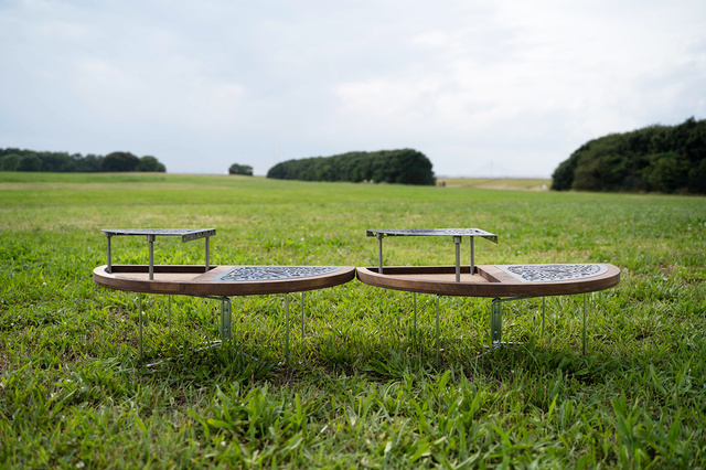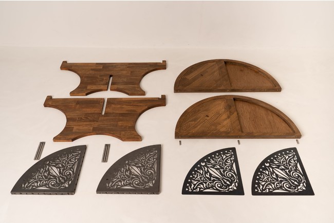 4つのアイアンプレートの内2つのプレートは3本の脚がついた立ち上がるテーブルアラベスク・スタンド「Arabesque Stand」となっているためテーブル天板上で立ち上げるとテーブルは立体構造に早変わり。料理の置き方ひとつで様々に表情を変える食卓を家族や仲間たちと料理を配置しながら楽しめ会話が弾みます。