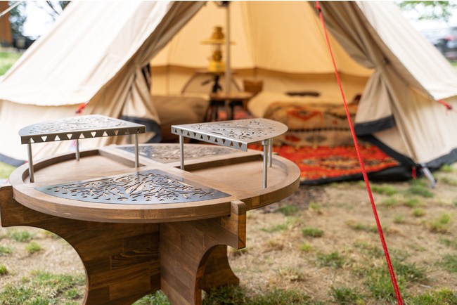 Point 10: 様々なテーブルとの組み合わせで利便性高くよりゴージャスにキャンプサイトを演出